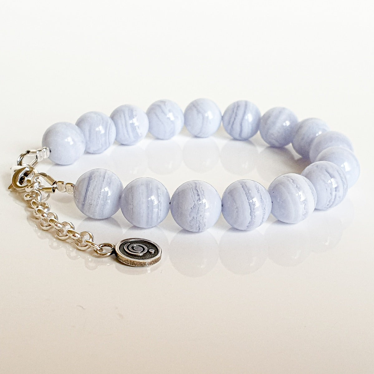 Natūralaus chalcedono apyrankė moterims. Akmenuko dydis 10 mm.