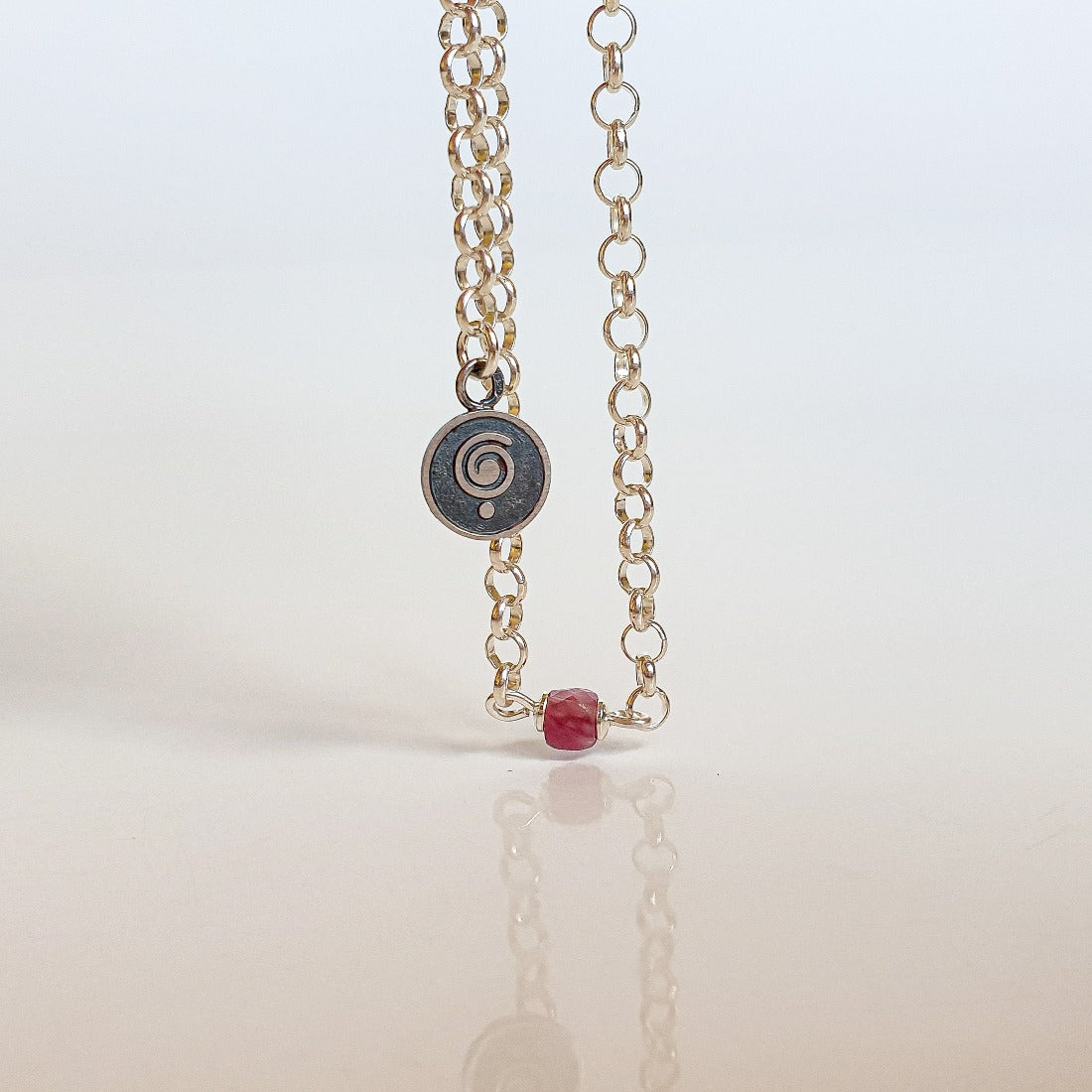 Apyrankę puošia rankų darbo sidabro medalikėlis paženklintas asmenybės augimą ir klestėjimą simbolizuojančia spirale. Medalikėlio diametras 9 mm.