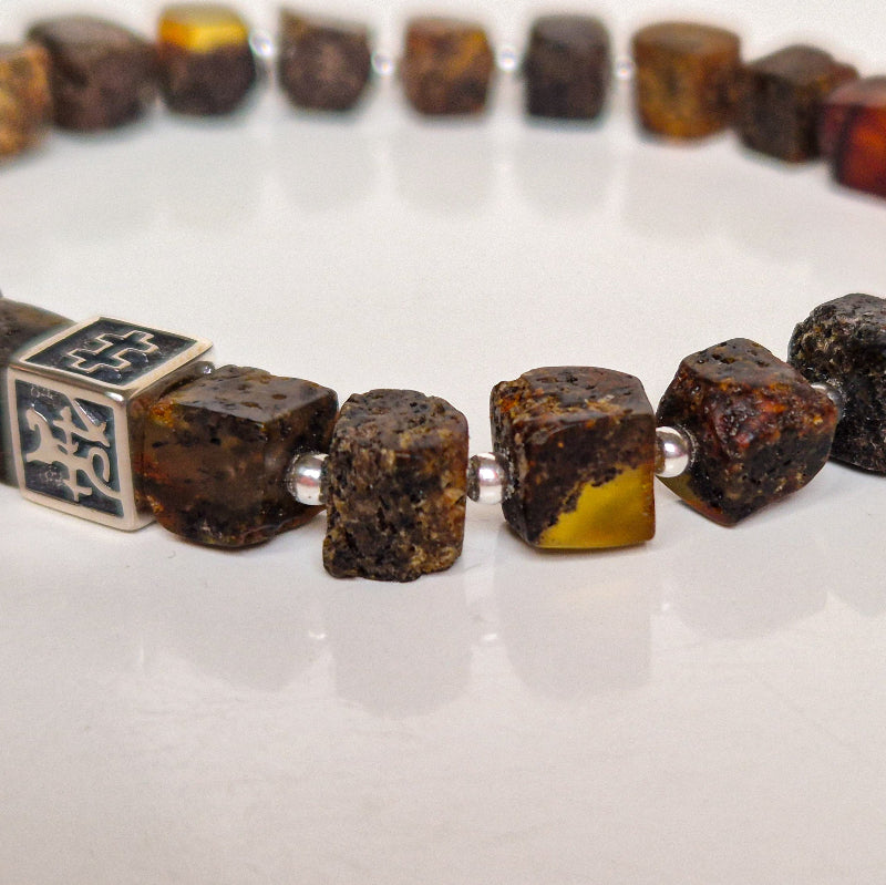 Juodojo Baltijos gintaro nepoliruotų kubelių sidabro 925 apyrankė Vytis - "Saulės istorijos"