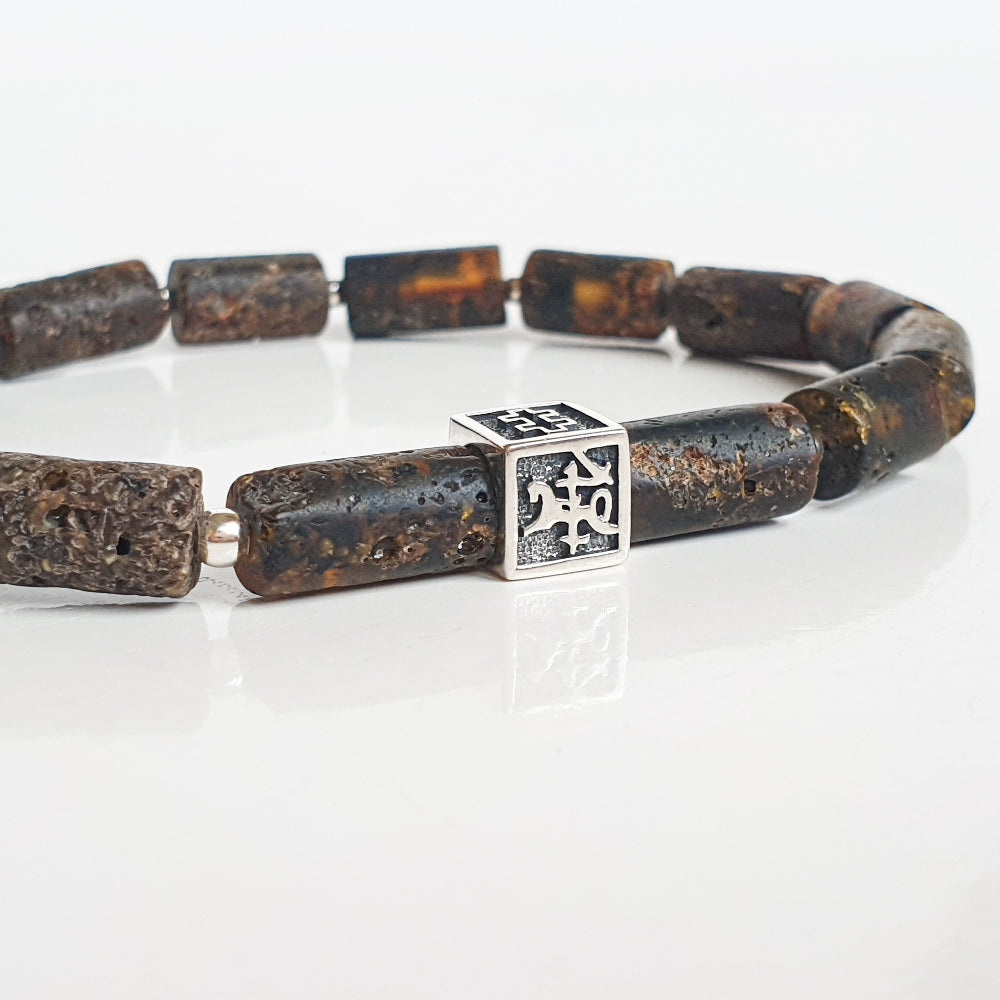 Tamsaus ir juodo Baltijos gintaro sidabro 925 apyrankė Vytis - "Saulės istorijos"