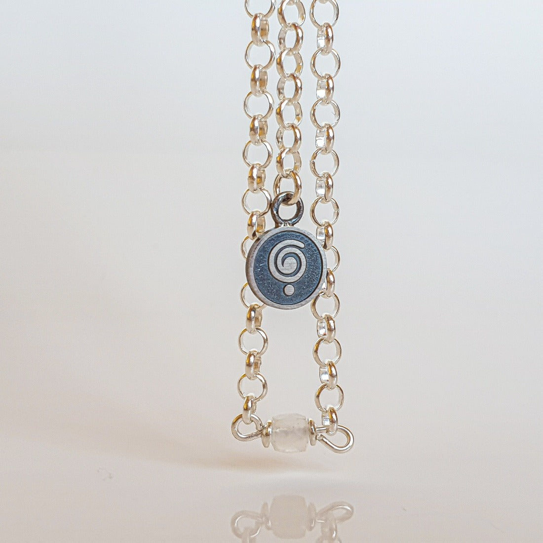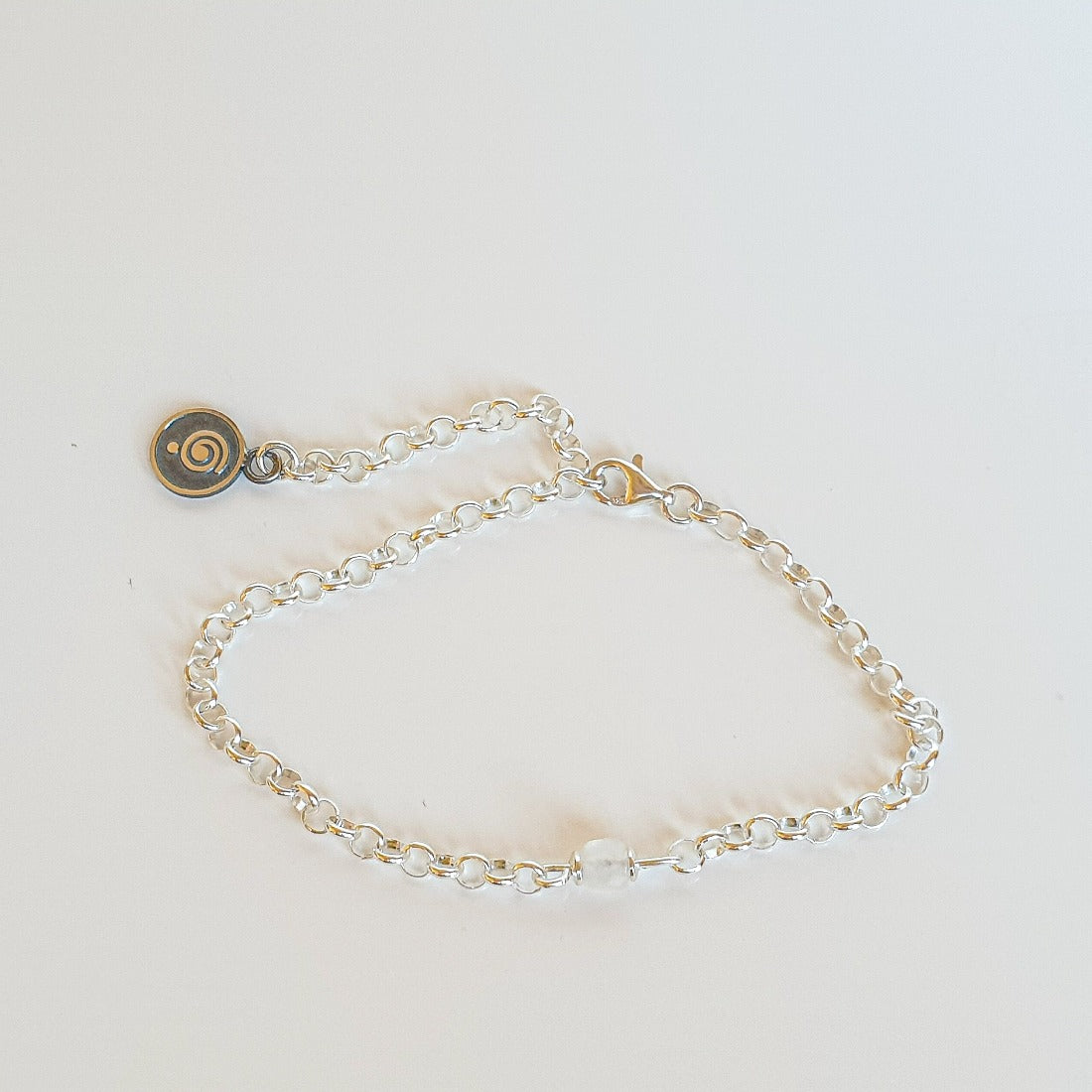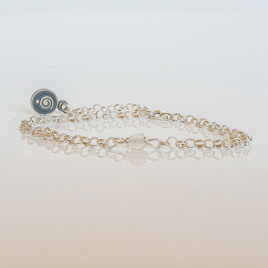 Universalaus dydžio sidabro 925 ir mėnulio akmens apyrankė. Sakoma, kad mėnulio akmuo padeda atskleisti melą, apsaugo nuo nuotaikų svyravimų. Puošiantis mėnulio akmeniu, nuraminamos emocijos ir skatinamas pasitikėjimas natūraliu gyvenimo ritmu. Akmuo atveria širdį įkvėpimui, mokėjimui atskleisti nauja ir įvykti sutapimams. Jis taip pat skatina teigiamus intuicijos žybtelėjimus, neleisdamas negatyviam mąstymui sunaikinti gerą idėją.