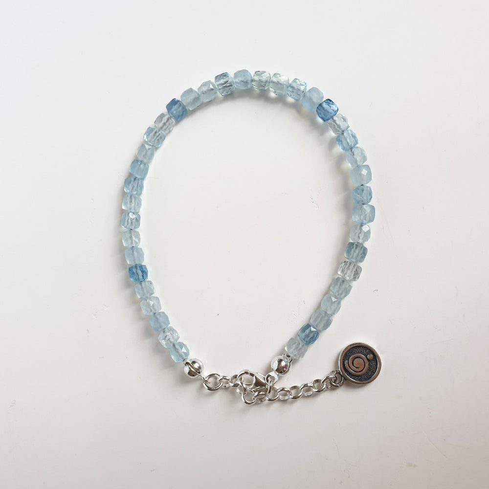 Aquamarine A+ Delicate Cube Silver 925 Bracelet for Women "Stone of Faith"