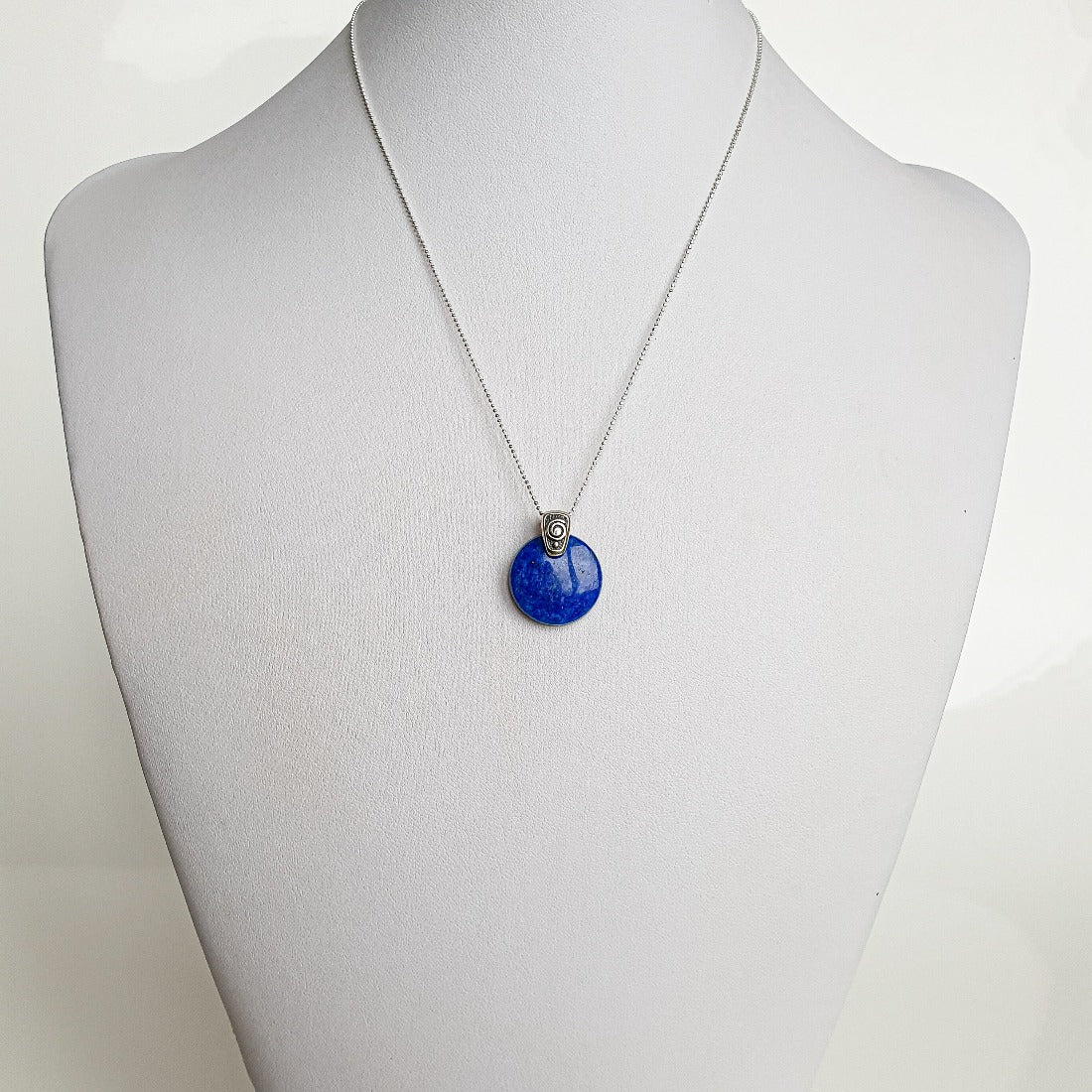 Pendant for women with ~20 mm round shape, hand-cut AAA+ grade Lazurute from Afghanistan attracts success in activities, business, self-realization, growth, personal goals, inner strength and wisdom.