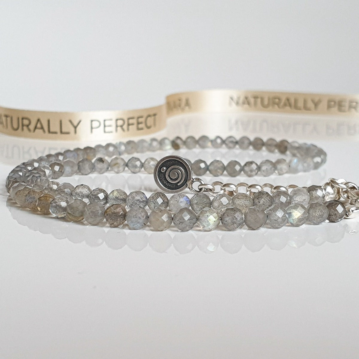 Set of Petit Secret collection necklace and bracelet for women with natural labradorite protects from various negative phenomena and situations. Labradorite helps you with the transformation of thought, intuition, strength and facilitates the ability to think clearly and guides you firmly through your life path.