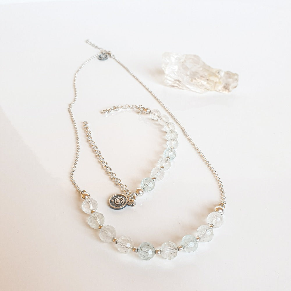 Set of Light blue topaz silver 925 necklace and bracelet for women.